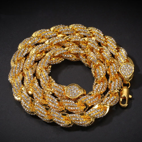 Men Women Rope Chain Necklace Iced Out Rhinestones Hip hop Necklaces Jewelry